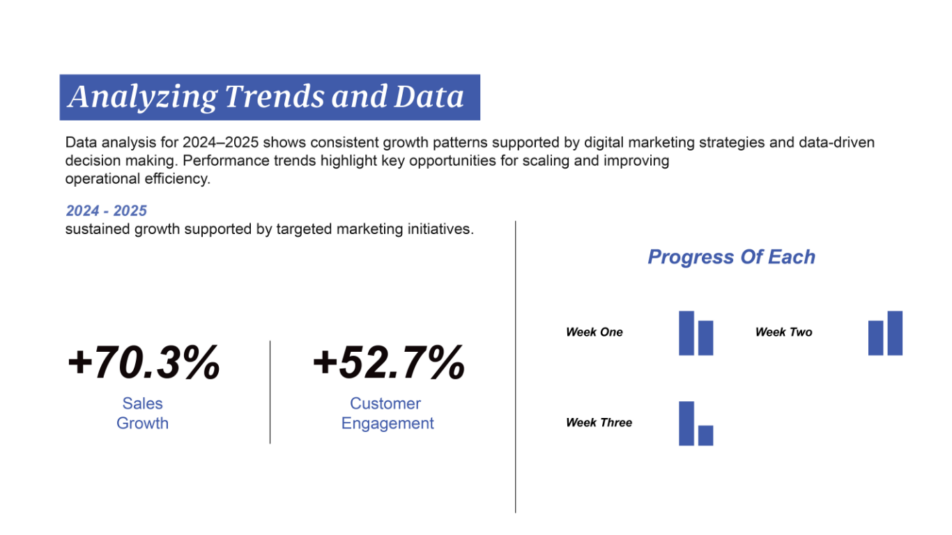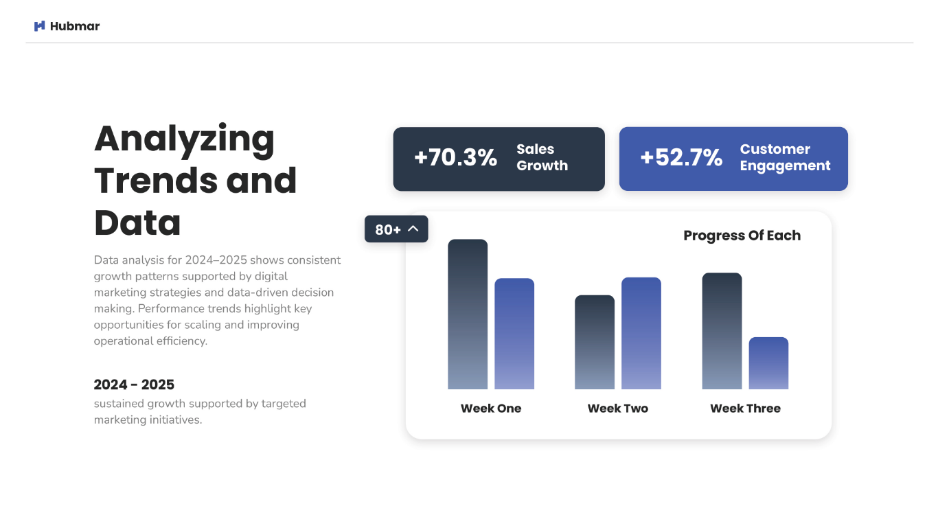 We transform complex data into persuasive narratives. Empower your leadership team with high-impact sales presentations and investor-ready pitch decks designed to command the room and close the deal.